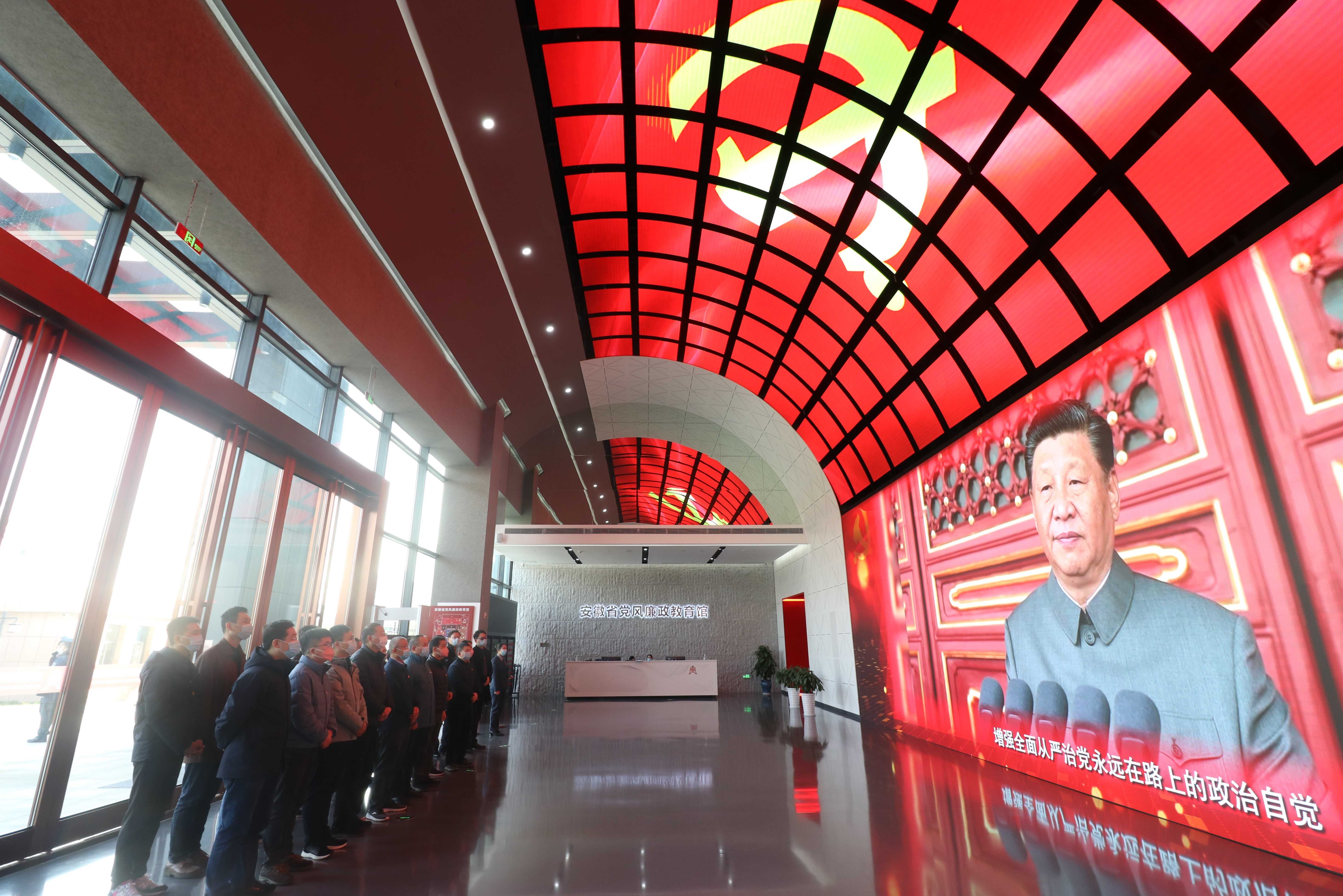 省黨風(fēng)廉政教育館以“永遠在路上”為主題,設(shè)有“紀律立黨 從嚴治黨”、“廉潤江淮 清風(fēng)揚帆”、“以案為鑒 警鐘長鳴”、“不忘初心 永葆清廉”四個展廳,通過展板、圖片、視頻、雕塑、互動查詢、場景還原、體驗空間等形式,全方位回顧中國共產(chǎn)黨篳路藍縷的百年紀律建設(shè)史,展現(xiàn)安徽省尤其是十屆省委以來全面從嚴治黨、黨風(fēng)廉政建設(shè)和反腐敗斗爭成果。